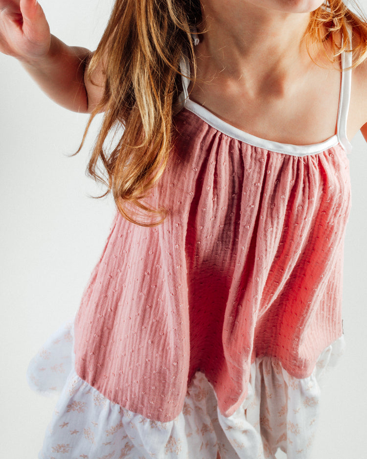 Abito lungo senza maniche rosa.